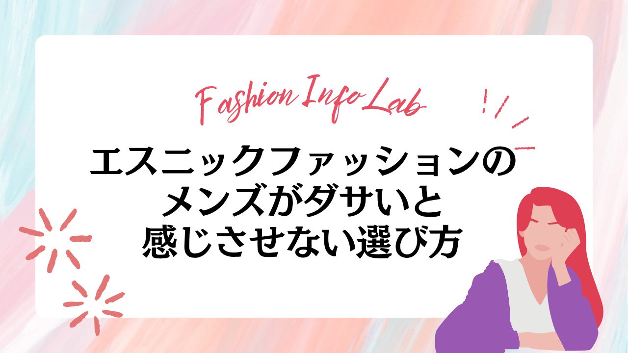 このように、エスニックファッションは着こなしを間違えると、意図せず「ダサい」という印象を与えてしまうことがあります。だからこそ、他のアイテムとのバランスを考えながら、シンプルなコーディネートから取り入れていくことが重要です。