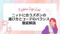 ただし、すべてのボトムスに合うわけではありません。タイトスカートなど、体にフィットするシルエットのものと合わせると、レースの凹凸が響いてしまう場合があります。このような時はレースなしのシンプルなインナーを選ぶ方が、全体のラインがきれいに見えます。